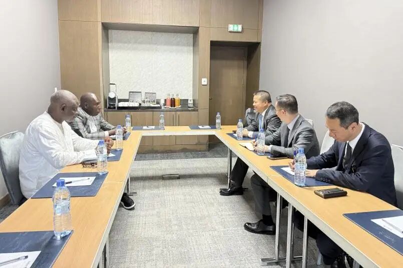 11月9日,蘭眉中董事長在與科特迪瓦非洲一體化部長Adama DOSSO進行會談