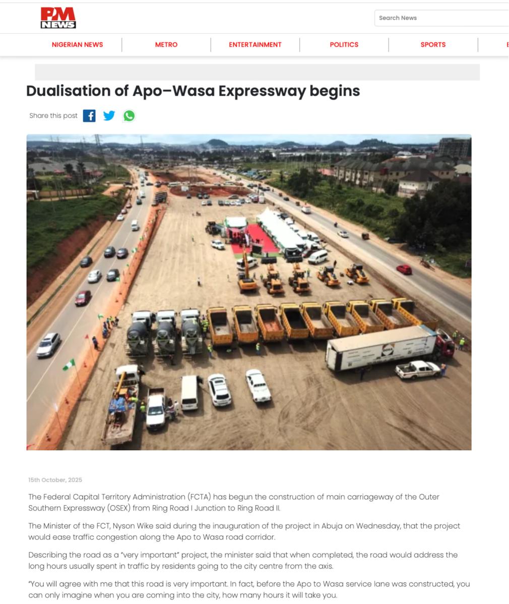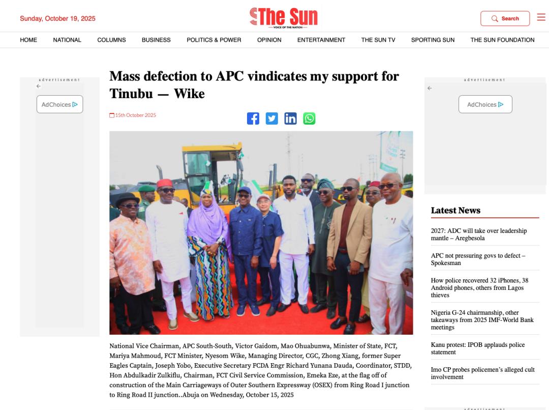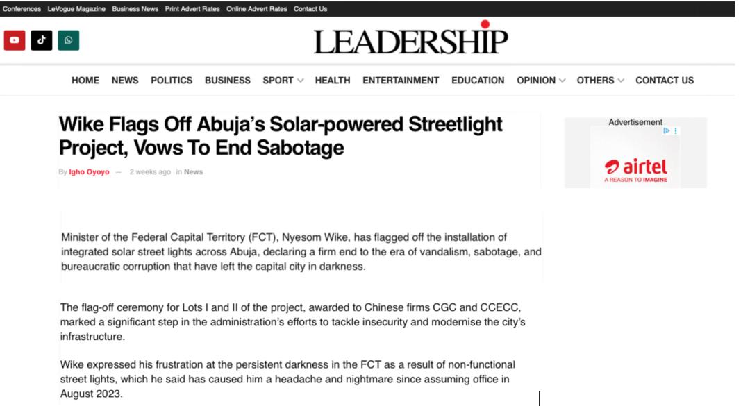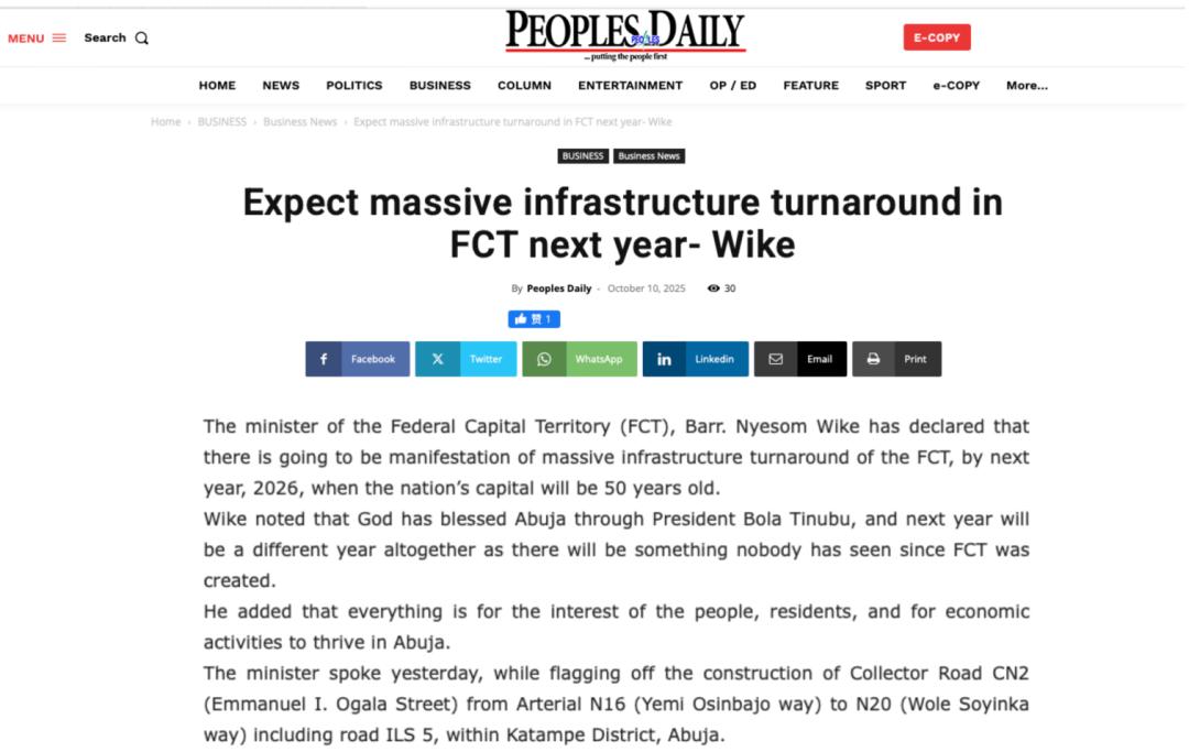 近期,尼日利亞《太陽報》(The Sun Nigeria)、《先鋒報》(Vanguard)、《論壇報》(Nigerian Tribune)、TVC新聞、新聞中心電視臺等主流媒體持續關注中地海外在尼開工的重點工程,通過專題報道、現場采訪等形式,深度解析項目對當地經濟、民生及基礎設施升級的推動作用。讓我們一起來回顧吧!