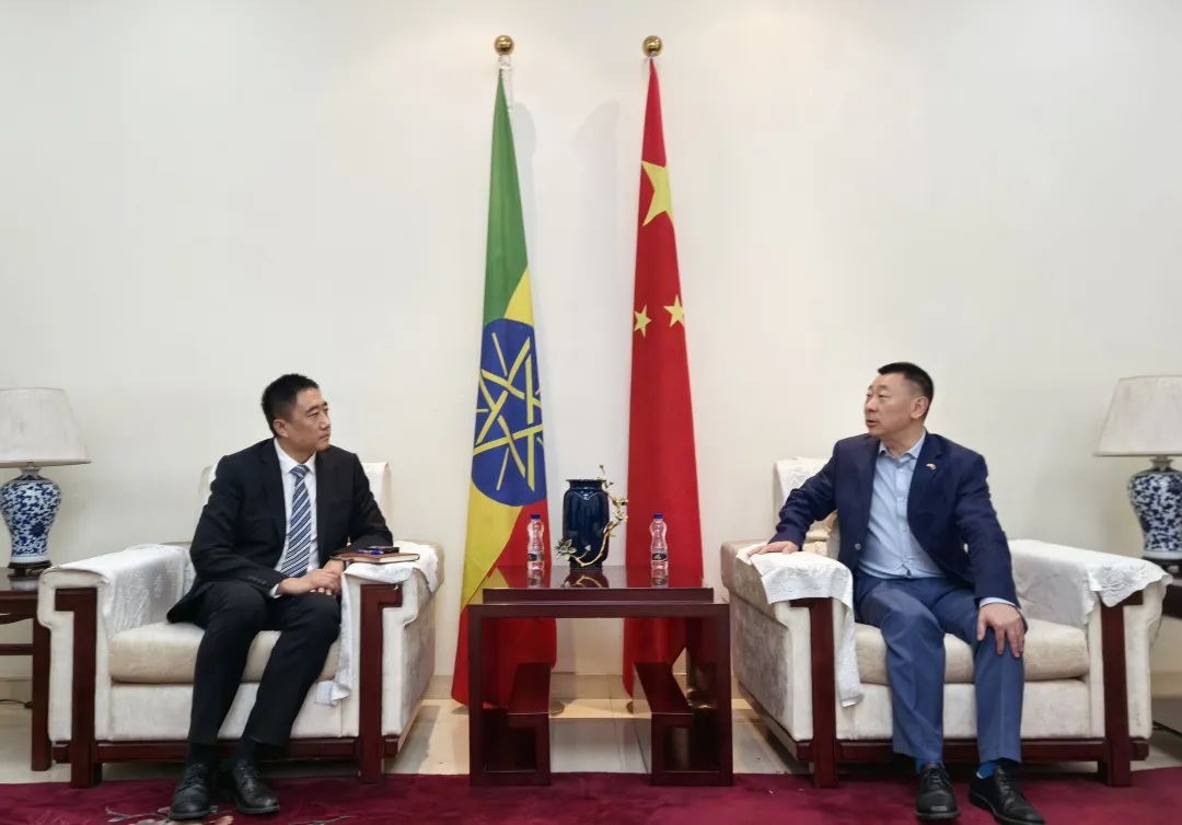 7月18日下午,蘇叢文一行拜會中國駐埃塞俄比亞大使館臨時代辦孫明晰、經濟商務公參劉曉光和警務參贊何銀等,重點匯報埃塞公司的戰略方向、經營狀況、新能源發展規劃及安全工作等情況,感謝使館長期以來對公司發展的指導和支持,表示將持續推進有益于當地民生的“小而美”項目,深化黨建工作,做實安全管理。孫明晰贊賞中地海外在埃取得的經營成就,期望公司在繼續解放思想、實事求是推進經營的同時,提升社會責任履行和安全管控能力,加大民生項目的宣傳力度,“以小見大”夯實民意基礎,成為助力中埃經貿發展的標桿企業。